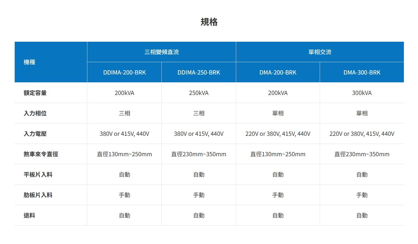 規格對照